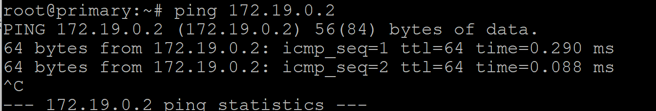64 bytes from 172.18.0.2: icmp_seq=2 ttl=64 time=0.085 ms