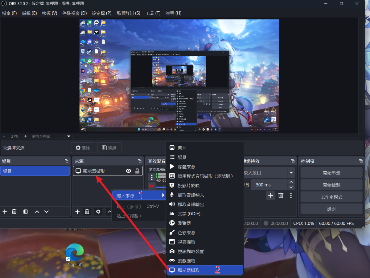 - 下載安裝 OBS(官方網站),安裝完成後開啟。