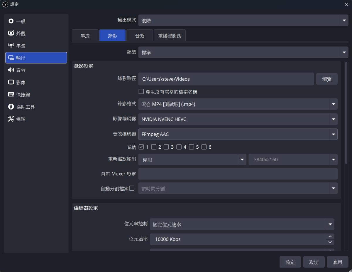 - 不想錄聲音可直接把對應音軌調成靜音,或在設定裡取消音訊裝置。